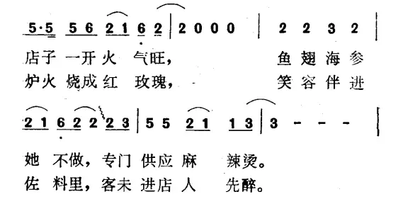 直到 80 年代后期,「麻辣燙」也沒(méi)有完全擺脫其形容詞意味。1987 年由張新泉作詞、谷建芬作曲的《火鍋姑娘》,仍以「麻辣燙」代指重慶火鍋的特色。