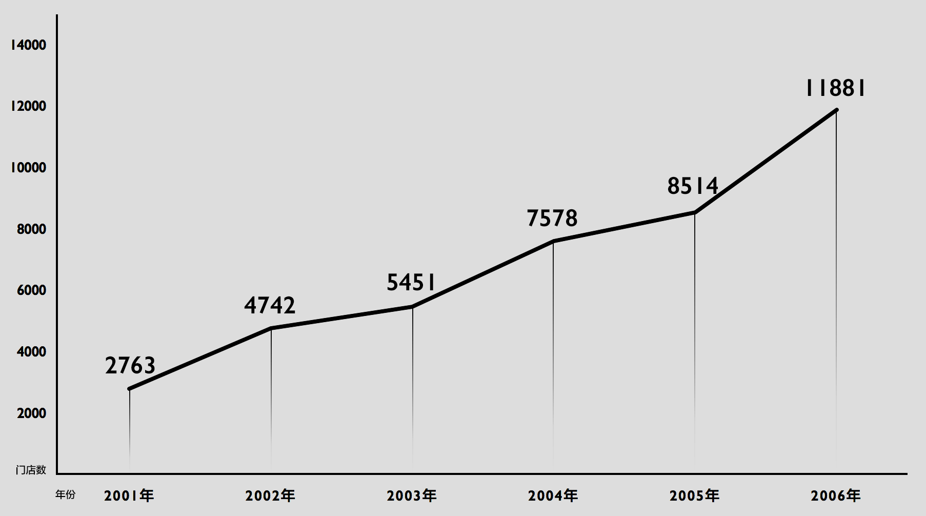 ▍在 2001 年清華大學(xué)一項(xiàng)調(diào)查中,50.2%的下崗人員都選擇了商貿(mào)餐飲業(yè)作為自己的就業(yè)意向。在他們推動(dòng)下,中國(guó)連鎖餐飲門(mén)店的數(shù)量增長(zhǎng)迅猛。