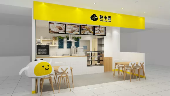 迎合年輕人的喜好,改變了品牌調(diào)性的“包小團(tuán)”,打出了“包子界最有根兒的潮牌”的口號(hào)。從漫畫(huà)風(fēng)格的LOGO、到以黃、白兩色為主的店面設(shè)計(jì),都在營(yíng)造小清新的用餐氛圍。