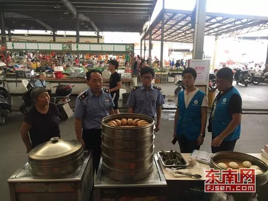▲泉州市市場監(jiān)督管理局對市場攤點紅糖饅頭進行檢查
