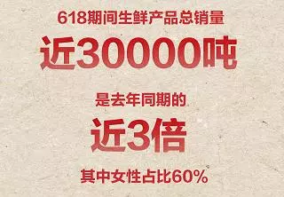 來源: 冷凍食品網 發(fā)布者:編輯今年618期間(6月1日0:00-6月18日24:00),京東生鮮共銷售生鮮產品約30000噸,是去年同期的近3倍,其中女性占比60%。