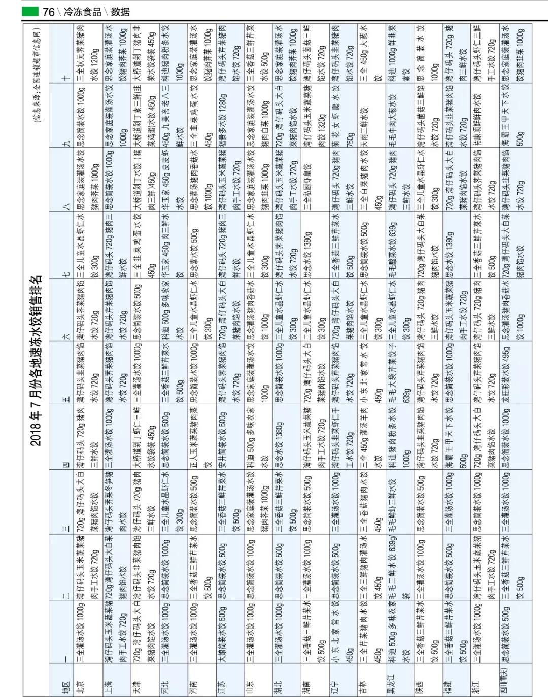 來(lái)源: 冷凍食品網(wǎng) 發(fā)布者:編輯▼2018年7月份各地速凍水餃銷(xiāo)售排名