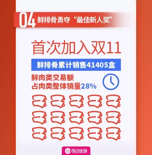 其中,原產(chǎn)地直采的鮮活陽澄湖大閘蟹狂售六萬多只,首次加入雙11的鮮排骨累計(jì)銷售超過4萬盒。