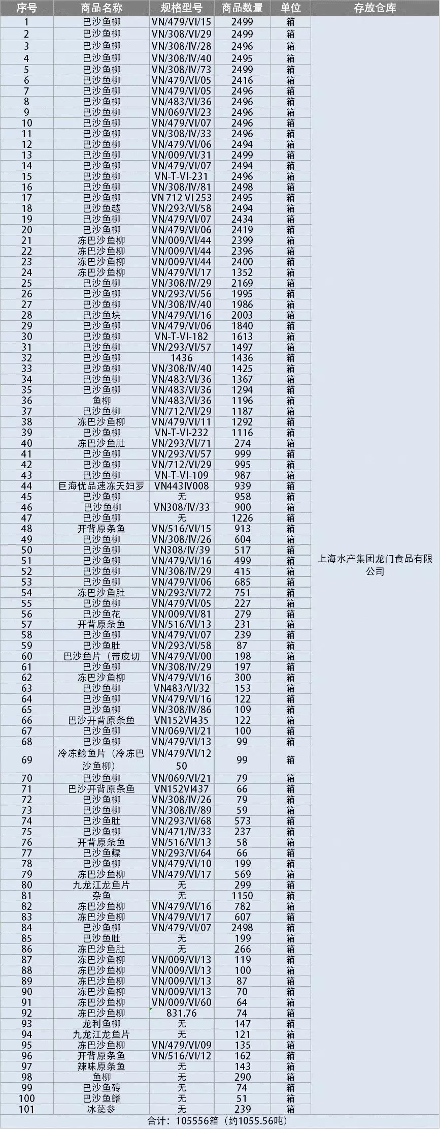 此次拍賣的拍品為2017年6月22日福建海關(guān)查獲的福建安信實(shí)業(yè)有限公司的走私巴沙魚產(chǎn)品,共計(jì)105556箱,約1055.56噸。涉及到的產(chǎn)品包涵凍巴沙魚柳、巴沙魚肚、凍巴沙魚原條、巴沙魚花、巴沙魚鰭等凍水產(chǎn)品。