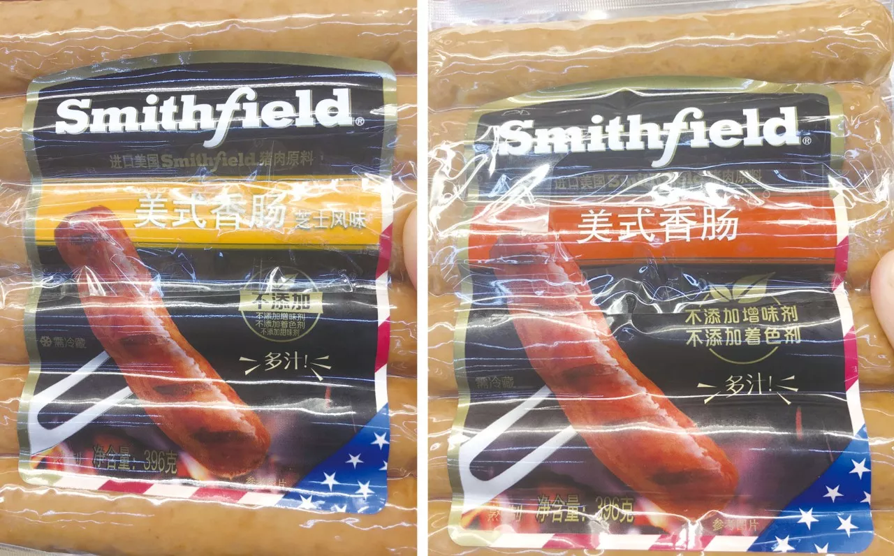 再看我們關(guān)注最多的速凍食品,記者發(fā)現(xiàn)“不添加”字眼多存在于一些大品牌產(chǎn)品中,如雙匯、三全和灣仔碼頭,看看它們都是如何標(biāo)注的。