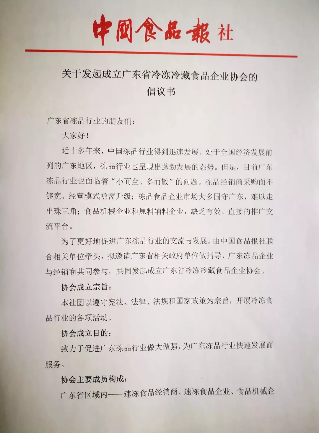 由《中國食品報》《現(xiàn)代食品》雜志社牽頭,擬邀請廣東省相關政府單位做指導,廣東凍品企業(yè)與經(jīng)銷商共同參與,共同發(fā)起成立廣東省冷凍冷藏食品企業(yè)協(xié)會。
