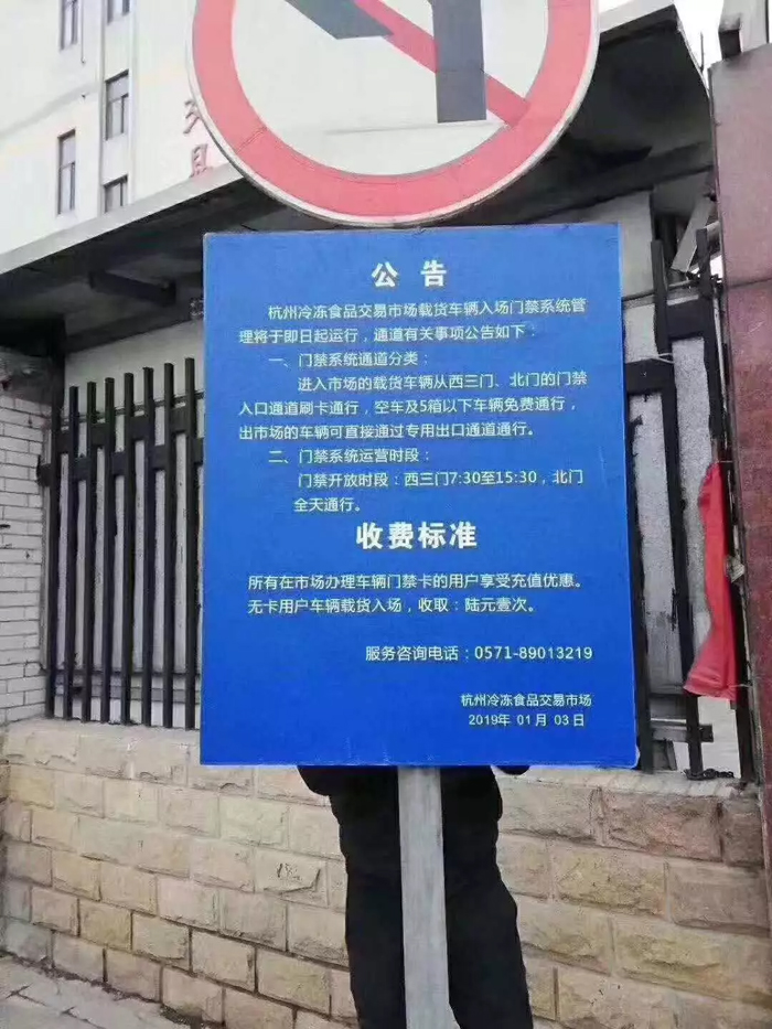 1月3日,杭州冷凍食品交易市場再發(fā)公告,稱載貨車輛入場門禁系統(tǒng)管理于即日起試運(yùn)行,公布了門禁系統(tǒng)的通道分類、運(yùn)營時段和收費(fèi)標(biāo)準(zhǔn)等內(nèi)容。