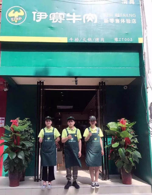 2019年5月18日,標(biāo)號(hào)豫ZT003號(hào)的伊賽牛肉直營(yíng)新零售體驗(yàn)店三號(hào)店正式開(kāi)業(yè)。綠色主題招牌下記錄著三個(gè)關(guān)鍵詞:牛排/火鍋/烤肉。