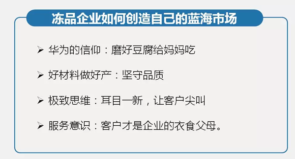 那么,問(wèn)題來(lái)了,凍品企業(yè)該如何創(chuàng)造自己的新藍(lán)海市場(chǎng)呢?