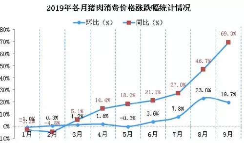 根據(jù)國家統(tǒng)計局10月15日發(fā)布的2019年9月份全國CPI(居民消費價格指數(shù)),9月CPI環(huán)比上漲0.9%,同比上漲3.0%。專家指出,9月CPI漲幅略超預(yù)期,豬肉價格推升的食品價格上漲是主要因素。具體而言,豬肉價格上漲69.3%,影響CPI上漲約1.65個百分點。