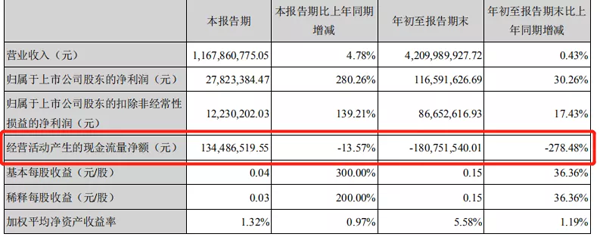 報(bào)告顯示,前三季度,公司營收8.78億元,同比增20.44%;歸屬于上市公司股東的凈利潤為0.12億元,同比降53.78%。