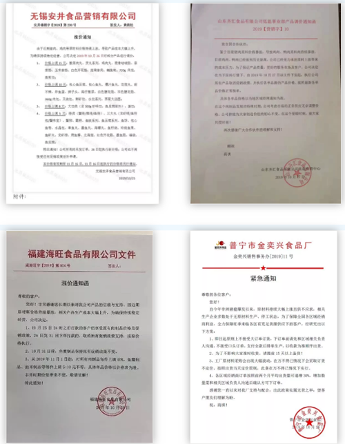 1、安井、海旺食品接連發(fā)布產(chǎn)品調(diào)價(jià)通知函
