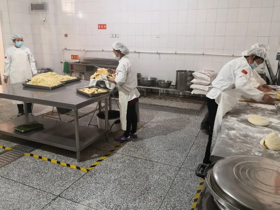 餐廳提前對所有場所進行了徹底、規(guī)范的消毒、清潔,包括墻面、地面、設備設施、門把手、廚用具等,確保360度無死角消毒。