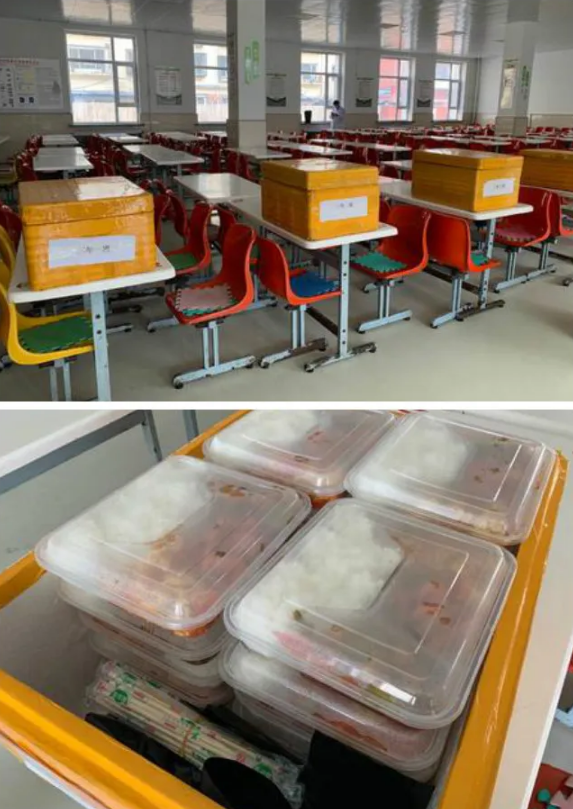 疫情期間,有的學校會安排學生們在教室分批就餐或分區(qū)就餐,這就需要由食堂工作人員將餐食配送至每位學生面前。