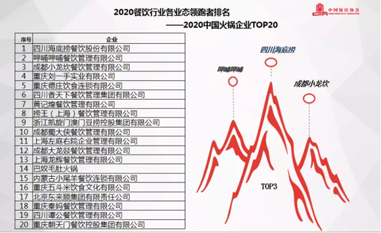 報(bào)告顯示,在2020餐飲行業(yè)各業(yè)態(tài)領(lǐng)跑者排名(2019財(cái)年)中,正餐前3名品牌分別為,杭州飲食服務(wù)集團(tuán)有限公司、山東凱瑞商業(yè)集團(tuán)、北京華天飲食集團(tuán)公司;海底撈、呷哺呷哺、小龍坎為火鍋類(lèi)排名前3名的企業(yè);快餐小吃前3名品牌為楊國(guó)福、張亮和老鄉(xiāng)雞;休閑餐前3名為豪客來(lái)、水天堂和嘉和世紀(jì)。