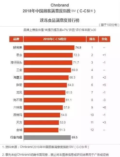 小編認為該評價標準比較有疑問的是:安井、海欣、興威、升隆等企業(yè)都沒有上榜,反倒是好利來、天方、西格瑪、胖哥、科迪(金城)作為速凍行業(yè)滿意度排行前12上榜。