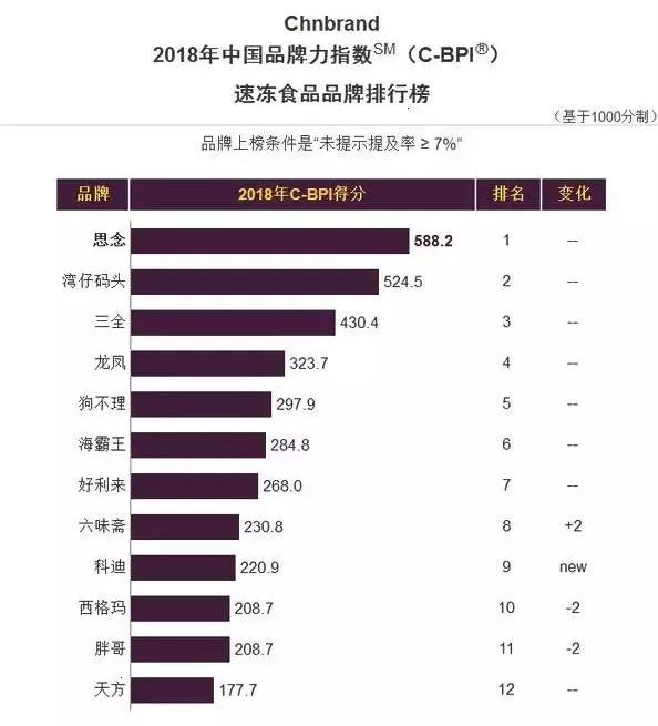 其實早在今年4月,Chnbrand還發(fā)布了2018中國品牌力指數(shù)(C-BPI)速凍食品品牌排行榜(見圖二)。