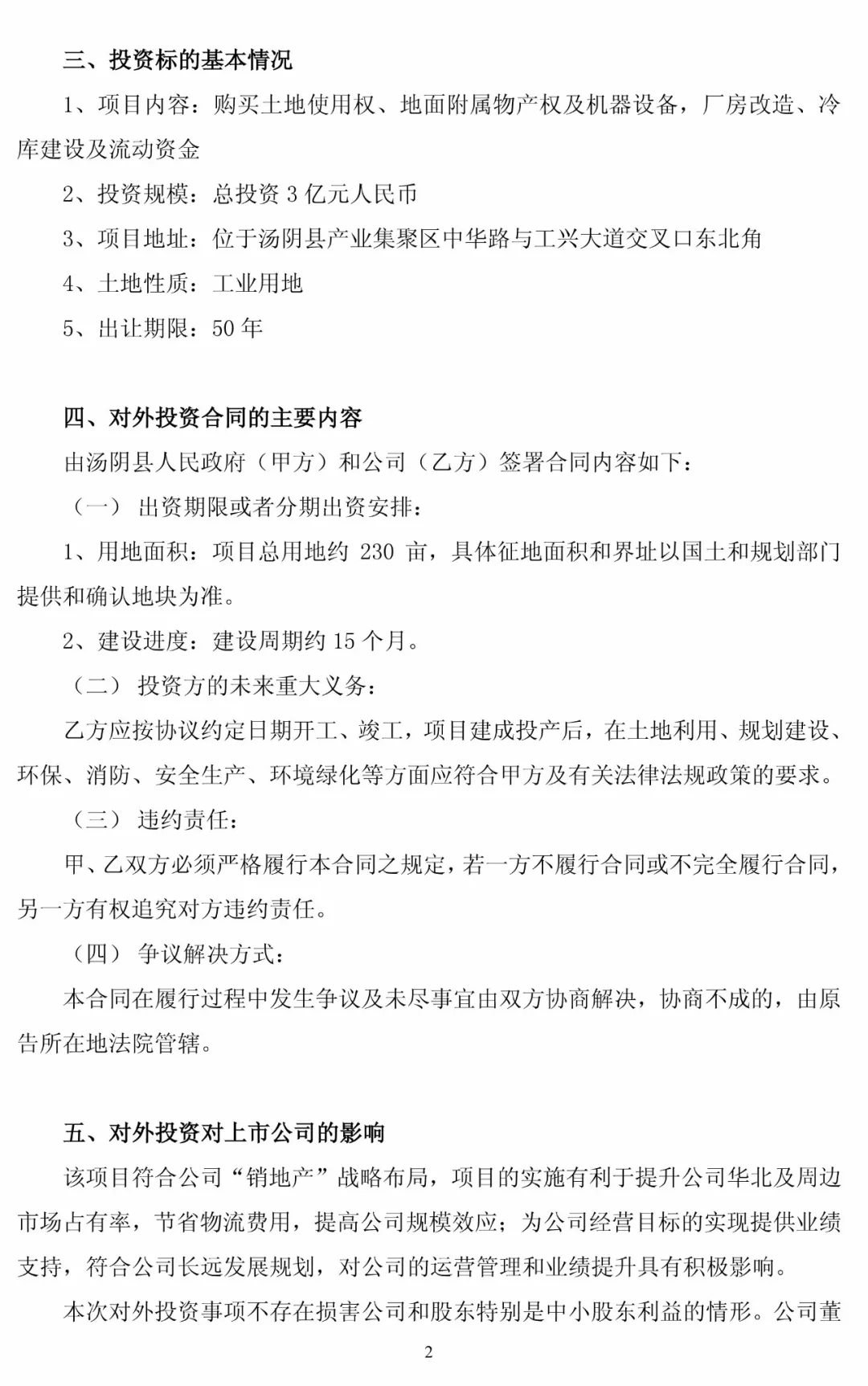 項目占地約230畝,地址位于河南省湯陰縣境內(nèi),具體面積和界址以國土和規(guī)劃部門提供和確認(rèn)地塊為準(zhǔn)。公告中表示,公司將在湯陰縣境內(nèi)注冊成立子公司并依法納稅,以達(dá)到互惠互利,共同發(fā)展的目標(biāo)。
