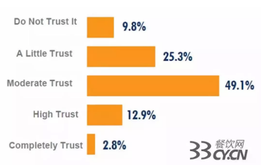 根據(jù)TrendSource近期基于美國便利店內鮮食(炸雞、熱狗、Nachos)的調查,近一半(49.1%)的消費者認為對于店內鮮食的安全性、食物質量適度信任,僅有2.8%的消費者完全信任其質量,另外合計約35%的消費者完全或基本不信任其質量。