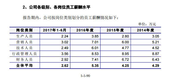 一線生產(chǎn)工人減少了,但工人的工資卻并沒有大幅上漲。2015年生產(chǎn)人員年薪僅2.8萬元,折合月薪僅2300元;2016年為3.85萬元。而官方數(shù)據(jù)統(tǒng)計(jì),2015-2017年,重慶市在崗職工平均月工資分別為5175元、5616元和6106元。也就是說,有友食品一線生產(chǎn)員工工資僅為重慶市在崗職工平均工資的一半。